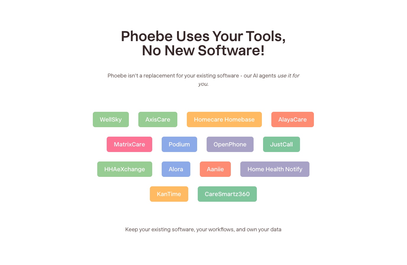 Phoebe takes on the repetitive work your coordinators do all day: chasing caregivers, confirming shifts, and cleaning up missed clock-ins/outs.